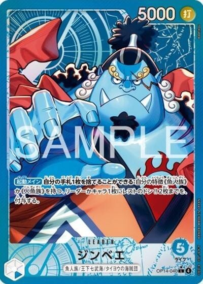 ジンベエ 【リーダーパラレル】【青】【OP14-040】【5000】【ライフ5】【リーダー】【起動メイン】魚人島/王下七武海/タイヨウの海賊団