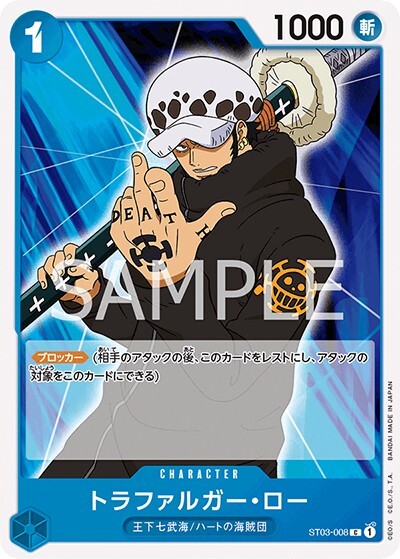 トラファルガー・ロー 【C】【スタートデッキ 王下七武海】【青】【ST03-008】【コスト1】【1000】【カウンター0】【ブロッカー】王下七武海/ハートの海賊団