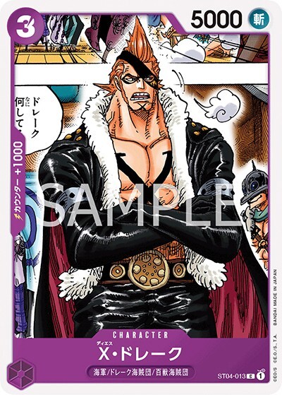 X・ドレーク 【C】【スタートデッキ 百獣海賊団】【紫】【ST04-013】【コスト3】【5000】【カウンター1000】【バニラ】百獣海賊団/ドレーク海賊団/海軍