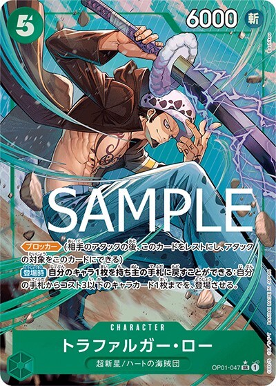 トラファルガー・ロー 【PRB-01】【SR】【パラレル】【緑】【OP01-047】【コスト5】【6000】【カウンター0】【ブロッカー】【登場時】超新星/ハートの海賊団