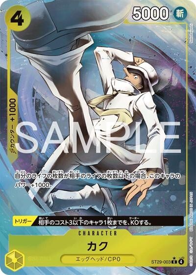 カク【パラレル】【C】【スタートデッキ 】【EGGHEAD】【黄】【ST29-003】【コスト4】【5000】【カウンター1000】【トリガー】エッグヘッド/CP0