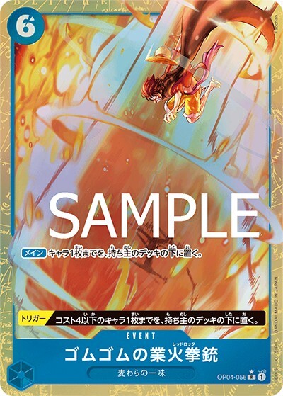 ゴムゴムの業火拳銃 【PRB-01】【R】【パラレル】【青】【OP04-056】【コスト6】【イベント】【トリガー】【メイン】麦わらの一味