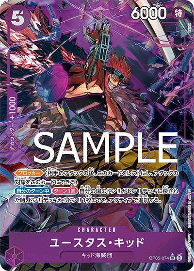 ユースタス・キッド 【PRB-01】【SR】【パラレル】【紫】【OP05-074】【コスト5】【6000】【カウンター1000】【ブロッカー】【自分のターン中】【ターン1回】キッド海賊団