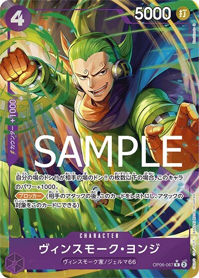 ヴィンスモーク・ヨンジ 【PRB-01】【R】【パラレル】【紫】【OP06-067】【コスト4】【5000】【カウンター1000】【ブロッカー】ヴィンスモーク家/ジェルマ66