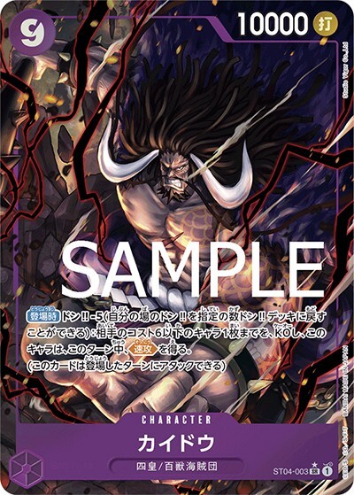 カイドウ 【PRB-01】【SR】【パラレル】【紫】【ST04-003】【コスト9】【10000】【カウンター0】【速攻】【登場時】四皇/百獣海賊団