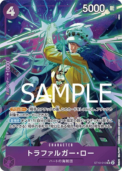 トラファルガー・ロー 【PRB-01】【SR】【パラレル】【紫】【ST10-010】【コスト4】【5000】【カウンター1000】【ブロッカー】【登場時】ハートの海賊団