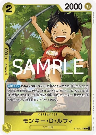 モンキー・D・ルフィ 【PRB-02】【C】【黄】【ST13-014】 【コスト2】【2000】【カウンター1000】【起動メイン】ゴア王国
