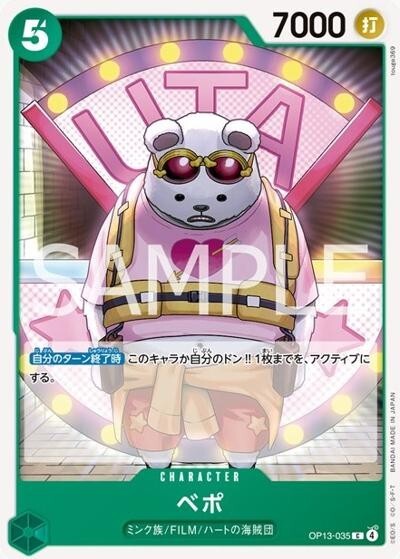 ベポ 【C】【緑】【OP13-035】【コスト5】【7000】【カウンター0】【自分のターン終了時】ミンク族/FILM/ハートの海賊団