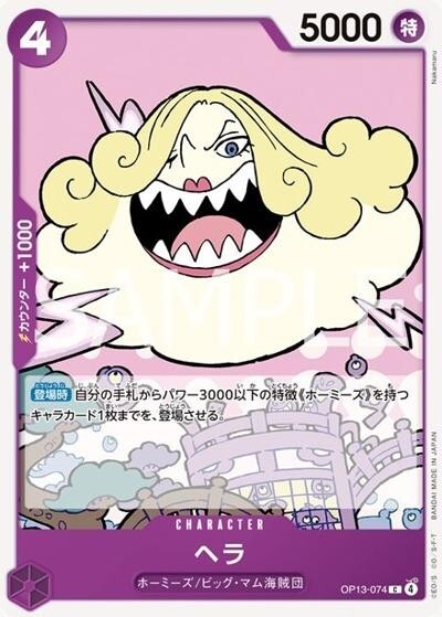 ヘラ 【C】【紫】【OP13-074】【コスト4】【5000】【カウンター1000】【登場時】ホーミーズ/ビッグ・マム海賊団