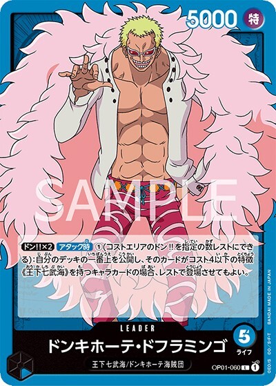 ドンキホーテ・ドフラミンゴ 【リーダー】【青】【OP01-060】【ライフ5】【5000】【アタック時】王下七武海/ドンキホーテ海賊団