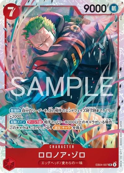 ロロノア・ゾロ 【SR】【赤】【EB04-007】【コスト7】【9000】【カウンター0】【速攻】エッグヘッド/麦わらの一味(4)