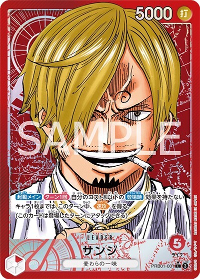 サンジ 【リーダーパラレル】【赤】【PRB01-001】【ライフ5】【リーダー】【5000】【起動メイン】【ターン1回】麦わらの一味