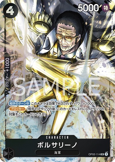 ボルサリーノ 【SR】【パラレル】【黒】【OP02-114】【コスト4】【5000】【カウンター1000】【相手のターン中】【ブロッカー】海軍