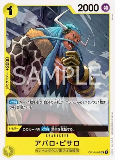 アバロ・ピサロ【UC】【黄】【OP16-102】【2000】【コスト1】【カウンター2000】【KO時】【トリガー】インペルダウン/黒ひげ海賊団