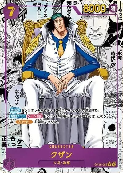 クザン【R】【コミパラ】【スーパーパラレル】【紫】【OP16-063 】【8000】【コスト7】【カウンター0】【起動メイン】【登場時】【ターン1回】【ブロッカー不可】大将/海軍