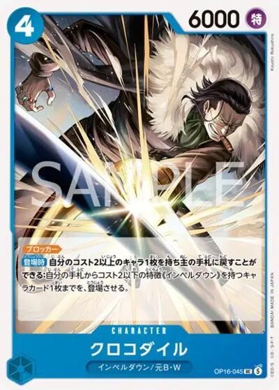 クロコダイル【UC】【青】【OP16-045】【6000】【コスト4】【カウンター0】【ブロッカー】【登場時】インペルダウン/元B・W
