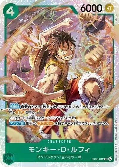 モンキー・D・ルフィ【SR】【緑】【ST30-012】【6000】【コスト4】【カウンター0】【登場時】【速攻】【アタック時】インペルダウン/麦わらの一味