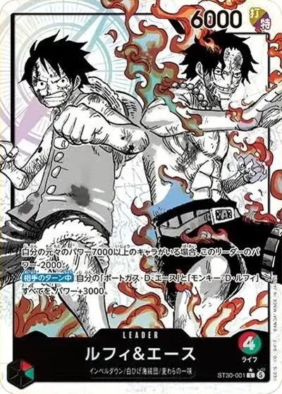 ルフィ&エース【リーダー】【パラレル】【赤緑】【 ST30-001】【6000】【ライフ4】【リーダー】【相手のターン中】インペルダウン/白ひげ海賊団/麦わらの一味