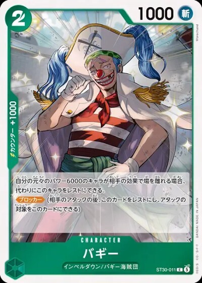 バギー【C】【緑】【ST30-011】【1000】【コスト2】【カウンター1000】【ブロッカー】インペルダウン/バギー海賊団 *