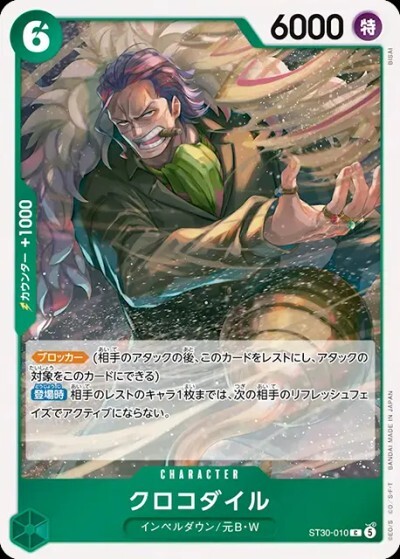 クロコダイル【C】【緑】【ST30-010】【6000】【コスト6】【カウンター1000】【ブロッカー】【登場時】インペルダウン/元B・W *