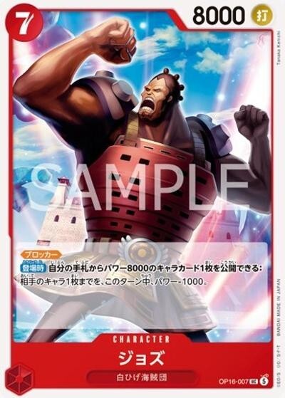 ジョズ【UC】【赤】【OP16-007】【8000】【コスト7】【カウンター0】【ブロッカー】【登場時】白ひげ海賊団
