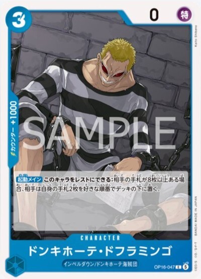 ドンキホーテ・ドフラミンゴ【C】【青】【OP16‐047】【0】【コスト3】【カウンター1000】【起動メイン】インペルダウン/ドンキホーテ海賊団 *