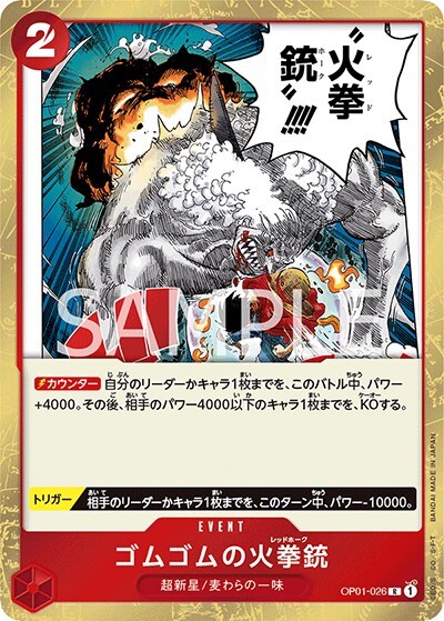 ゴムゴムの火拳銃 【R】【赤】【OP01-026】【コスト2】レッドホーク【イベント】【トリガー】【カウンター】超新星/麦わらの一味