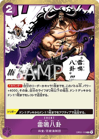 雷鳴八卦 【R】【紫】【OP01-119】らいめいはっけ【コスト2】【イベント】【トリガー】【カウンター】四皇/百獣海賊団