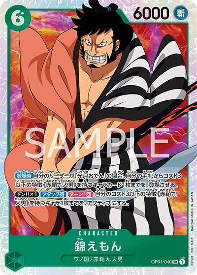 錦えもん 【SR】【緑】【OP01-040】【コスト6】【6000】【カウンター0】【アタック時】【登場時】【ターン1回】ワノ国/赤鞘九人男