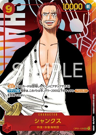 シャンクス 【シークレット】【パラレル】【赤】【OP01-120】【コスト9】【10000】【カウンター0】【速攻】【アタック時】四皇/赤髪海賊団