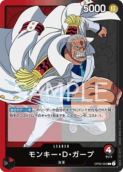モンキー・D・ガープ 【リーダー】【赤黒】【OP02-002】【ライフ4】【5000】【自分のターン中】海軍