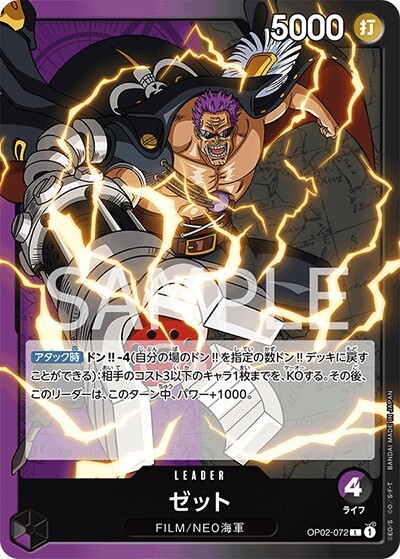 ゼット 【リーダー】【黒紫】【OP02-072】 【ライフ4】【5000】【アタック時】FILM/NEO海軍