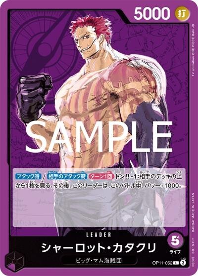 シャーロット・カタクリ 【リーダー】【紫】【OP11-062】【ライフ5】【5000】【アタック時】【相手のアタック時】【ターン1回】ビッグ・マム海賊団 [57434953]