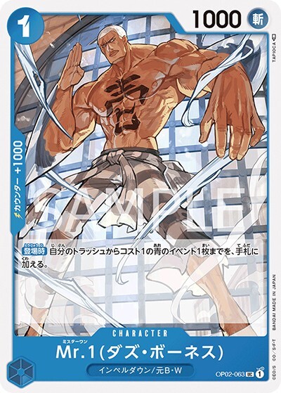 Mr.1(ダズ・ボーネス) 【UC】【青】【OP02-063】【コスト1】【1000】【カウンター1000】【登場時】インペルダウン/元B・W