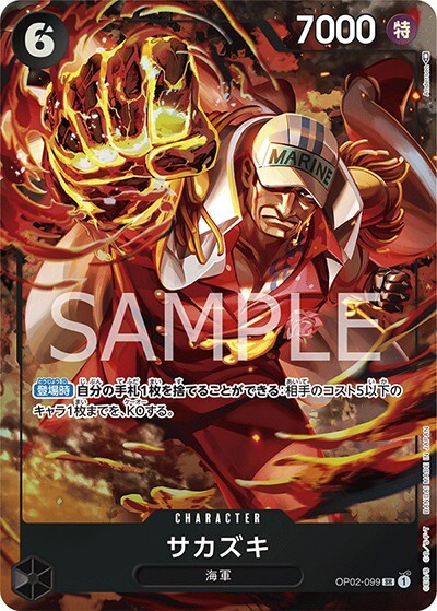 サカズキ 【SR】【パラレル】【黒】【OP02-099】【コスト6】【7000】【カウンター0】【登場時】海軍