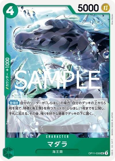 マダラ 【UC】【緑】【OP11-036】【コスト4】【5000】【カウンター1000】【登場時】海王類