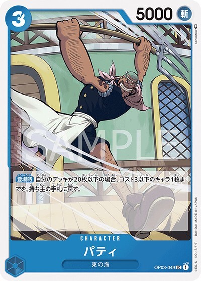 パティ 【UC】【青】【OP03-049】【コスト3】【5000】【カウンター0】【登場時】東の海