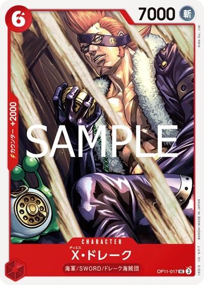 X・ドレーク 【UC】【赤】【OP11-017】【コスト6】【7000】【カウンター2000】【バニラ】海軍/SWORD/ドレーク海賊団
