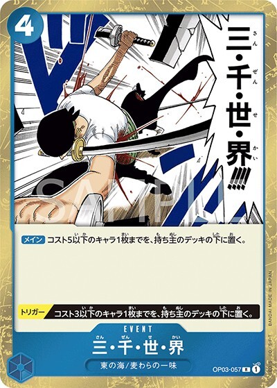 三・千・世・界 【R】【青】【OP03-057】【コスト4】世界【イベント】【トリガー】【メイン】東の海/麦わらの一味