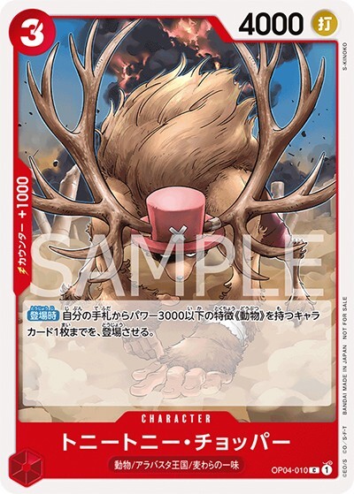 トニートニー・チョッパー 【C】【赤】【OP04-010】【コスト3】【4000】【カウンター1000】【登場時】動物/アラバスタ王国/麦わらの一味