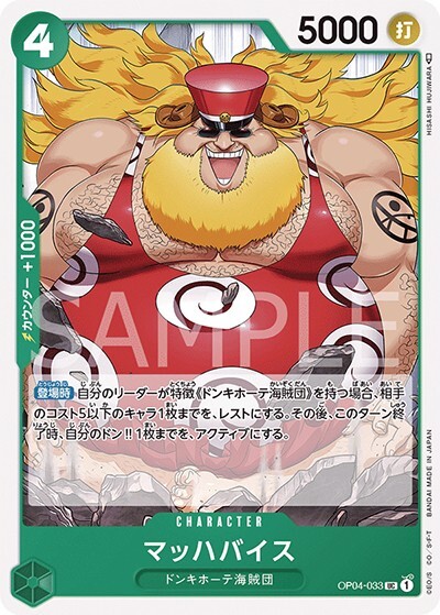 マッハバイス 【UC】【緑】【OP04-033】【コスト4】【5000】【カウンター1000】【登場時】ドンキホーテ海賊団