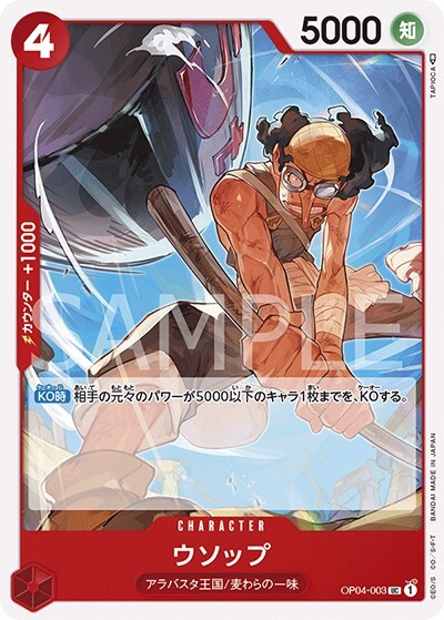 ウソップ 【UC】【赤】【OP04-003】 【コスト4】【5000】【カウンター1000】【KO時】アラバスタ王国/麦わらの一味